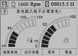 啟動發動機后,如果監控儀表未檢測到充電信號,提示“發電機已經不正常發電!”文字報警,監控儀表面板上充電報警指示燈
