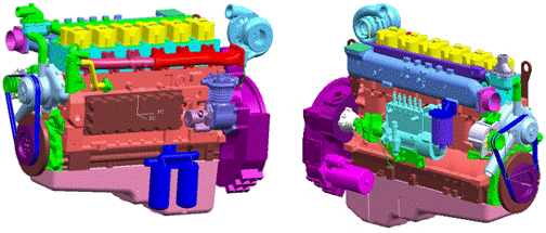 整體梯形結(jié)構(gòu)曲軸箱,剛度好,有效減少曲軸箱變形,降低噪聲。 采用每缸一蓋結(jié)構(gòu),制造性好,廢品率低,維修性好。 內(nèi)冷油道活塞、新型活塞環(huán)和缸套滿足了發(fā)動(dòng)機(jī)性能和可靠性的要求,有效降低機(jī)油耗。 油、氣獨(dú)立回流和旋風(fēng)式油氣分離技術(shù)使油、氣分離徹底。 后置齒輪室,使后端取力方便,并且使發(fā)動(dòng)機(jī)外形更窄,可以適配各種重型車底盤。參考WD615和五十鈴6SD1TC兩種柴油機(jī)的結(jié)構(gòu)進(jìn)行設(shè)計(jì)。WD615柴油機(jī)為干式缸套結(jié)構(gòu),缸徑×行程為126×130,缸心距為150,齒輪室前置; 6SD1TC柴油機(jī)也是干式缸套結(jié)構(gòu),缸徑×行程為120×145,缸心距為136,齒輪室后置。YC6D10在WD615的基礎(chǔ)上將干式缸套改為濕式缸套,缸徑設(shè)計(jì)為120,行程為145,缸心距為150,活塞連桿結(jié)構(gòu)參考6SD1TC進(jìn)行設(shè)計(jì);齒輪室采用后置結(jié)構(gòu)以提高配套適應(yīng)性;缸蓋采用一缸一蓋結(jié)構(gòu)。