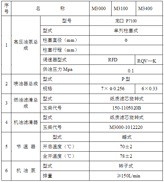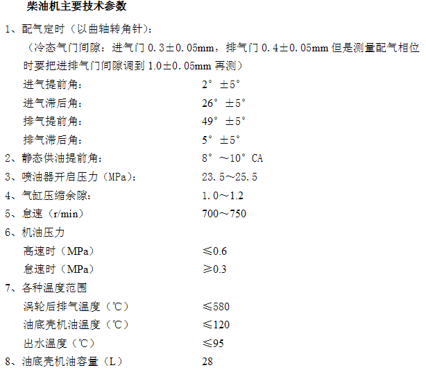 玉柴柴油機(jī)主要技術(shù)規(guī)格