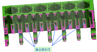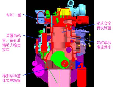 冷卻水采用每缸單獨(dú)進(jìn)水的橫流結(jié)構(gòu),保證各缸冷卻均勻 。