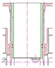 濕式缸套結(jié)構(gòu),缸套厚8.5mm。強(qiáng)度高,變形小,有利于降低機(jī)油耗;采用上止口定位,制造性能好;缸孔表面容易強(qiáng)化,耐磨性好,壽命長;維修性好;而且采用濕式缸套結(jié)構(gòu),氣缸體鑄造容易,廢品率低。