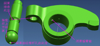 潤滑油從推桿上到調(diào)整螺釘,再經(jīng)過調(diào)整螺釘上到搖臂調(diào)整螺釘孔,然后進(jìn)入搖臂的搖臂軸孔,潤滑搖臂軸,構(gòu)思巧妙,解決缸蓋不好上油的問題。