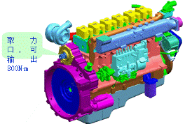 ¢ 配套適應(yīng)性高:采用后置齒輪室,使發(fā)動(dòng)機(jī)更窄,可以適合國內(nèi)各種重型車底盤。