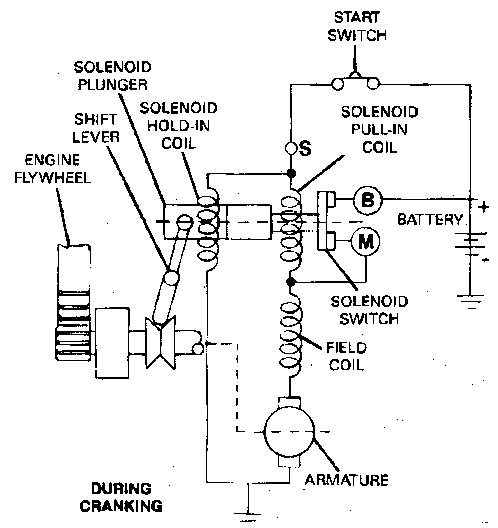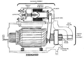 l 在吸入線(xiàn)圈和保持線(xiàn)圈磁力作用下,柱塞被吸入電磁閥而移動(dòng)轉(zhuǎn)換桿,嚙合馬達(dá)齒輪和飛輪齒輪。