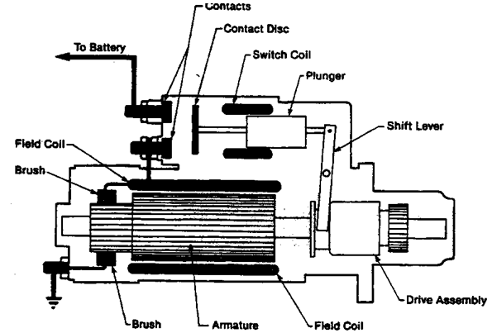 l 外殼和磁場(chǎng)線(xiàn)圈、轉(zhuǎn)子和換向環(huán)、馬達(dá)驅(qū)動(dòng)機(jī)構(gòu)、電磁接觸器和切換桿、碳刷