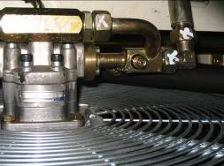 應(yīng)為390 bar,否則調(diào)節(jié)工作閥塊動臂調(diào)節(jié)螺釘 ,如下圖里側(cè)螺釘。