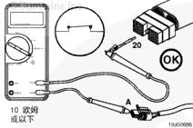 如果測量值大于 10 歐姆,則信號電源導線中存在開路。維修導線,或更換線束。參考 OEM 故障診斷及排除手冊。