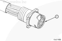 如果提供了(屏蔽)觸針,則測量 9-針 Deutsch™ 接頭的 SAE J1939 數據通信接口(屏蔽)觸針與發動機缸體或底盤接地之間的電阻。SAE J1939 數據通信接口屏蔽必須接地在車輛蓄電池接地處。萬用表必須顯示為閉路(10 歐姆或更?。H绻娐凡皇情]路,請參考《OEM 故障診斷及排除手冊》了解維修說明。