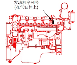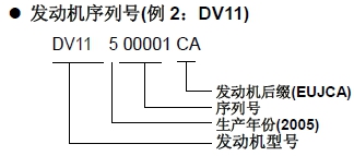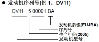 發動機型號和序列號設置在圖示位置。當尋求必要的產品保證和部件訂購時,這些數字是必要的。同時通過各數字的位置也指明了發動機的型號和系列號。