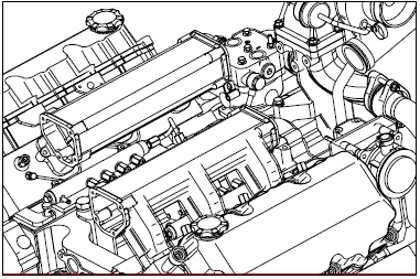 � 松開渦輪增壓器固定螺栓并從排放歧管中取出渦輪增壓器。