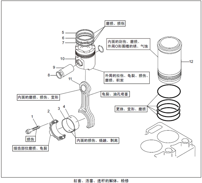 (2) 檢查曲軸箱的缸套安裝部位,確認(rèn)無壓損、腐蝕等異常。