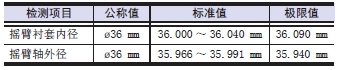 測量大端孔內(nèi)徑時(shí),分別按照圖示A、B、C 方向,測量前后2 處。將A、B、C 的最大值減去最小值為橢圓量。超過極限值時(shí)更換新品。