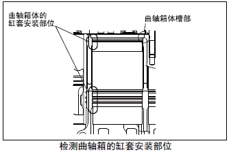 (1) 檢查曲軸箱的凹槽部分,確認(rèn)角部無裂損,與缸套凸肩下面接觸部分無單側(cè)接觸。有異常時(shí),修整曲軸箱的凹槽部分。