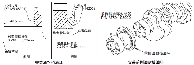 (1) 測量曲軸外徑和油封擋油環(huán)的內(nèi)徑,確認(rèn)過盈量。