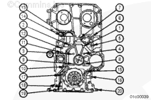 齒輪室的 1 號安裝位置鑄有 “Special Capscrew(專用螺釘)”字樣(參見插圖)。此螺釘必須是短頭螺釘,避免螺釘與惰輪接觸。