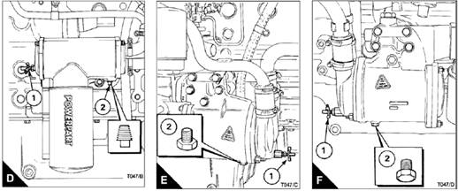 5 If a lubricating oil cooler is fitted, open the drain tap or remove the drain plug (B1 or C1/D1/E1/F1) in order