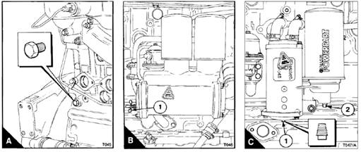 1 Clean the outside surfaces of the fuel filter assembly. If a drain tap is fitted to the filter bowl, drain the fuel