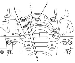 注:如果需要更換所有連桿軸瓦,可以同時在兩個氣缸上進(jìn)行本程序。本程序可在下列氣缸配對上同時進(jìn)行。1和6,2和5和3和4。確保在從一對氣缸換到另一對氣缸之前安裝完兩對連桿軸瓦。有關(guān)正確的步驟,請參閱《拆解和組裝》,“連桿軸瓦-安裝”。