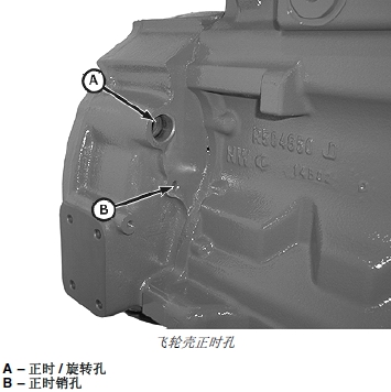 2. 拆下John Deere約翰迪爾強鹿柴油發(fā)動機正時/ 旋轉孔 (A) 和正時銷孔 (B) 上的塑料塞或蓋板。