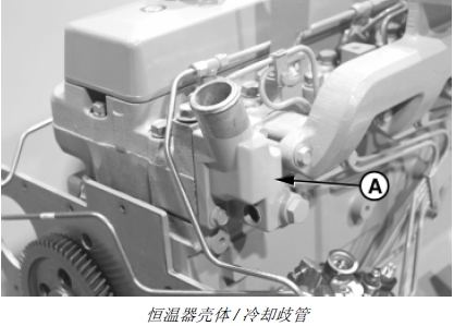 注意: 一些John Deere約翰迪爾強鹿柴油發(fā)動機的恒溫器/ 冷卻歧管與缸蓋是一體的。