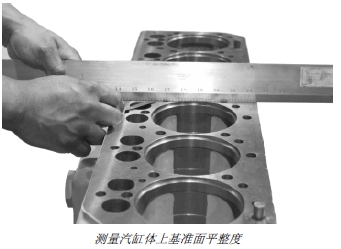 使用 D05012ST 精密直角尺和塞尺檢查汽缸體頂部的基準面平度。如果平整度不符合技術規格的要求,可刮研汽缸體上基準面。