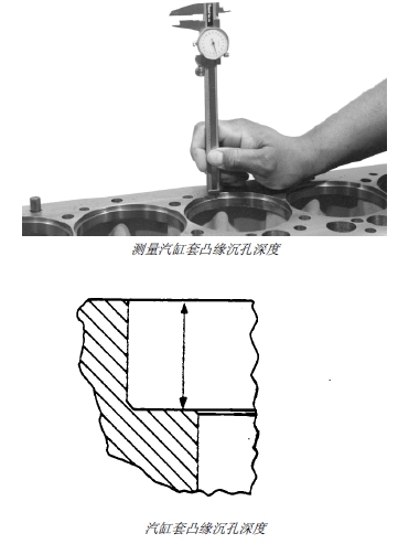 測量汽缸體內汽缸套凸緣沉孔深度并與下列技術規格進行比較。如果沉孔深度不符合技術規格要求,可安裝汽缸套墊片。