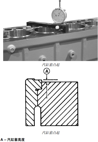 注意: 在新或舊汽缸體中安裝新汽缸套總成時,必須檢查汽缸套凸出高度。