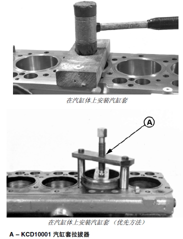 注意: 安裝汽缸套時,建議采用 KCD10001 (A) 或JDG1145 汽缸套拉拔器。