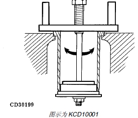 4. 如果汽缸套凸起高度超過技術規格的要求,檢查汽缸體的汽缸套支撐凸緣有無毛刺或沉孔深度是否正確。如有毛刺,應在汽缸體的汽缸套凸緣肩部涂上研磨劑,然后裝入汽缸套,并用 KCD10001 或 JDG1145汽缸套拉拔器左右轉動和研磨凸緣,研磨量以能夠裝入汽缸套為準。