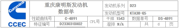 重慶康明斯發(fā)動機(jī)KTA38-G5數(shù)據(jù)單