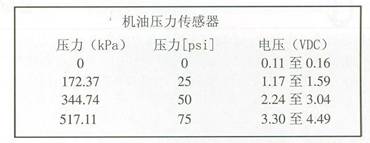下表為一個機油壓力傳感器在不同的機油壓力輸出信號電壓值。具體在測量壓力傳感器時請參考電路圖上壓力傳感器參數表。