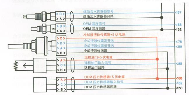 需要指出的是,在實際的設備中,主機廠的電路連接不會完全和康明斯原裝電路圖中的接法一樣。這是因為康明斯電路圖中推薦的接法包含了發動機所有的特性,而主機廠在安裝時有些控制功能可能不啟用,或者在康明斯允許的前提下對電路作一定的改動。