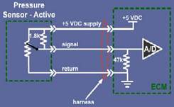 Cummings engine using pressure sensor has two different working principle, a capacitive pressure sensor, another for the piezoelectric crystal type. Two sensors are three lines, two power line to the sensor provides 5 volt working voltage, a signal line to provide ECM pressure signal voltage. Capacitive pressure sensor by an internal capacitance sensing pressure changes, when the pressure changes, the pressure difference between two pole plates of capacitor