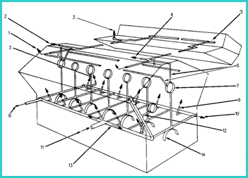 1.       去搖臂軸的油道 2. 堵信住的油道 3. 堵頭 4. 去高壓油泵的油道 5. 搖臂軸 6. 去氣門挺柱的油道 7. 凸輪軸軸承孔 8. 去渦輪增壓器的油道 9. 活塞冷卻噴嘴 10. 去正時齒輪殼體的油道 11. 缸體主油道的供油管 12. 去前惰齒輪的油道 13. 缸體中的主油道 14. 主軸承孔