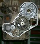 齒輪傳動機構包括曲軸齒輪、機油泵齒輪、惰輪、凸輪軸齒輪、燃油泵齒輪和附件驅動齒輪(空壓機、動力轉向油泵)共六個齒輪。