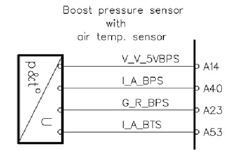 針腳:A14(正),A40(進氣壓力信號),A23(負),A53(進氣溫度信號)