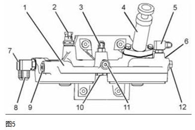 3. 從燃油濾清器底座總成(1)上拆下燃油旁通閥(6)。從燃油旁通閥上拆下O形密封圈。