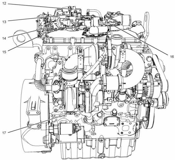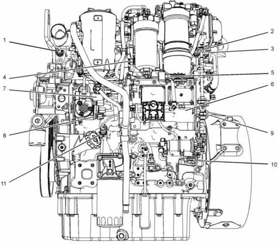 Perkins1204E-E44DE發動機典型1204E-E44發動機右側和頂部的傳感器位置