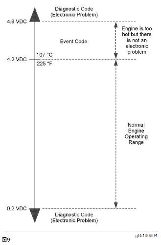 RENR5033-0275 故障排除章節 圖10g0i023565機油壓力圖系統響應:360(1)當該事件代碼激活,“ 檢查CAT發動機燈” 會閃亮。一旦CAT發動機機油壓力升至21 kPa (3 psi),超過圖10中“機油低壓范圍”達到20秒,事件代碼會被記錄。 360(2)當該事件代碼激活,“ 檢查CAT發動機燈” 會閃亮。一旦CAT發動機機油壓力升至21 kPa (3 psi),超過圖10中“機油低壓范圍”達到20秒,事件代碼會被記錄。 可能的性能影響:360(1)• 沒有性能影響。360(2)• ECM以每秒17.5%的速率,恢復扭矩到100%。故障排除:• CAT發動機潤滑系統存在問題。• CAT發動機機油壓力傳感器存在問題。檢查CAT發動機機油油位。A.檢查CAT發動機機油油位。期望結果:CAT發動機油位正常。結果:• OK-CAT發動機油位正常。修理:參考《系統運行/測試和調整》“ 潤滑系統”獲得機油壓力的信息。停止。• 不行-CAT發動機油位低。修理:添加機油到適當位置。停止。i02490800E361冷卻液溫度高SMCS 代碼: 1395-038-TA生成該代碼的條件:發生下列情況:361(1)• CAT發動機運行至少3分鐘。• 冷卻溫度至少110 °C (230 °F)達到10秒。注意:如果冷卻溫度降至2 °C (36 °F),低于停止點達到4秒,警告會被取消。 361(2)• CAT發動機運行至少3分鐘。• 冷卻溫度至少111 °C (232 °F)達到10秒。注意:如果冷卻溫度降至2 °C (36 °F),低于停止點達到45秒,功率下降會被取消。 系統響應:361(1)