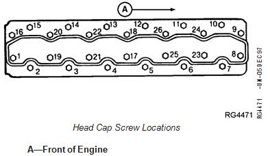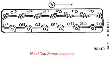 5. Again, sequentially (start at cap screw No. 1 and proceed through cap screw No. 26) turn each cap screw 90. Line on top of cap screw will now be parallel to crankshaft.