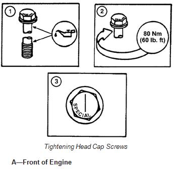 4. Install correct length cap screws marked “SPECIAL” in proper locations shown and tighten using the TORQUE-TO-YIELD tightening procedure, described next in this group. See TORQUE-TO-YIELD