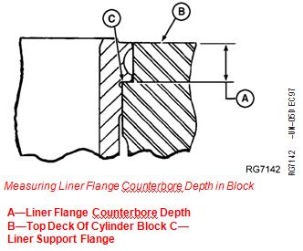 A—Liner Flange Counterbore Depth B—Top Deck Of Cylinder Block C—Liner Support Flange