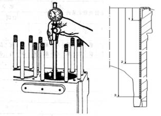1.測量內徑。檢查進、排氣閥導管有無腐蝕現象發生,用內徑表測量其內徑并做記錄。結合氣閥閥桿外徑的測量尺寸,計算兩者之間的間隙。