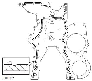 1 安裝前最多20 分鐘內,在正時盤上的槽外側涂抹一層 2 mm (0.08")厚的密封膠。