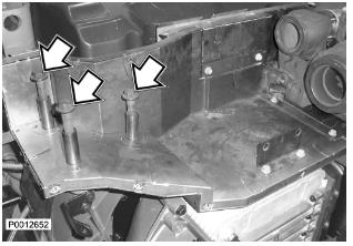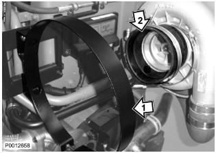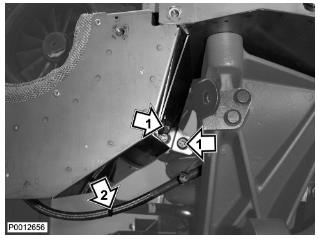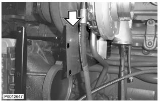 72 僅適用于 D13B-A/C/G/H/K/L,D13C2-A,D13C4-A(雙渦輪增壓器)安裝將隔熱罩固定到歧管上的兩個螺栓和墊片(1)。不要完全緊固螺栓。安裝將隔熱罩側(cè)面固定到其下部的螺栓。用中心螺栓夾緊輸油軟管(2)。不要完全緊固螺栓。