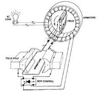 該系統采用繞制的勵磁電樞,它與主磁場同軸旋轉。通過將主發電機的交流輸出的一小部分整流,調壓器給勵磁機磁場提供可調的直流電源。