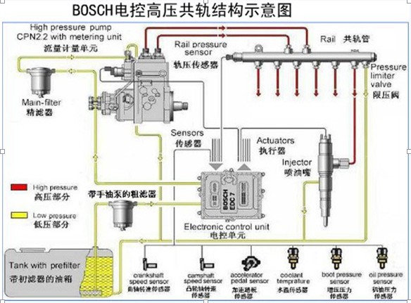 如圖為博世電控高壓共軌結(jié)構(gòu)圖