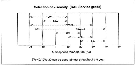 API 等級 CD 或CF(美國石油工業(yè)標(biāo)準(zhǔn))最高溫度在120℃以下使用,更換周期為250小時。機(jī)油溫度越高,機(jī)油越稀;同時溫度也影響機(jī)油的使用壽命。TBN值說明,小于2需更換.SAE(粘度等級) 汽車工程協(xié)會標(biāo)準(zhǔn),根據(jù)環(huán)境溫度選擇,夏季在中國大多數(shù)地區(qū)可使用15W-40的機(jī)油。