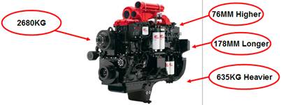 直列6缸結構跟現在的康明斯6缸機相比提供了更高的動力輸出。