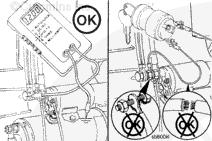 如果萬用表不顯示電壓值,檢查連接起動馬達電磁閥與蓄電池的電纜是否斷裂。并檢查端子是否松動或腐蝕。